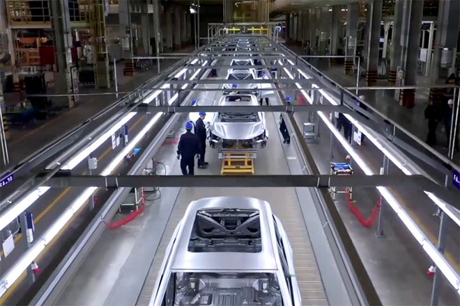 整個(gè)焊裝車(chē)間支持柔性線(xiàn)的轉化,通過(guò)智能化制造系統的精密控制,實(shí)現不同車(chē)型的夾具在20秒內進(jìn)行切換,這種無(wú)縫切換保證了生產(chǎn)線(xiàn)可以同時(shí)生產(chǎn)4種不同車(chē)型。
