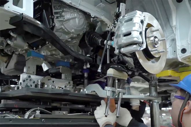 扭矩控制系統也是總裝車(chē)間里處于國內領(lǐng)先水平的科技裝備,系統通過(guò)154套高精度工具保證442個(gè)關(guān)鍵擰緊點(diǎn)的準確性和可追溯性。在生產(chǎn)過(guò)程中,一旦有某個(gè)工位扭力未達到標準,生產(chǎn)線(xiàn)便會(huì )停下來(lái)。
